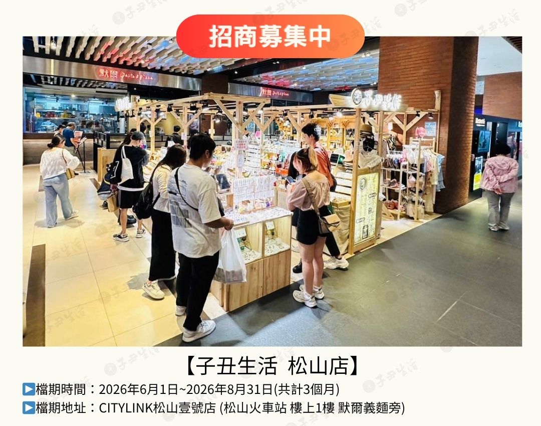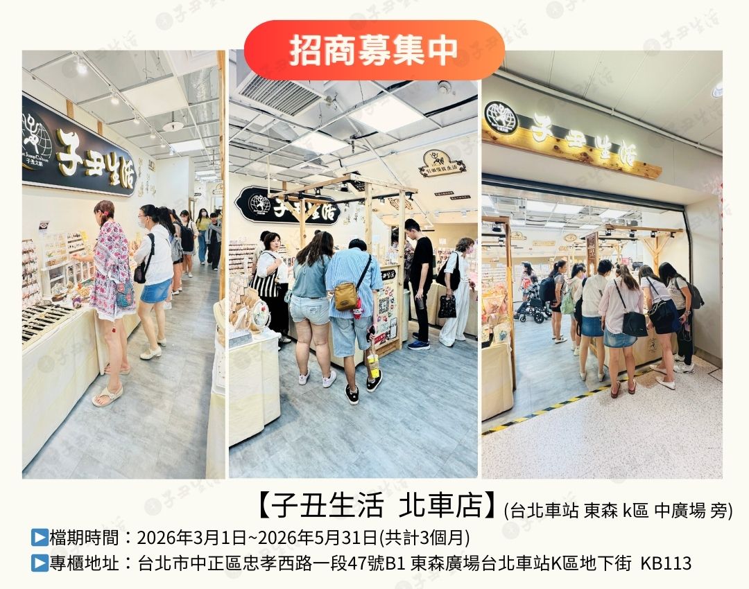 【子丑生活 北車店】 招商資訊 (台北車站 東森 k區 中廣場 旁)
