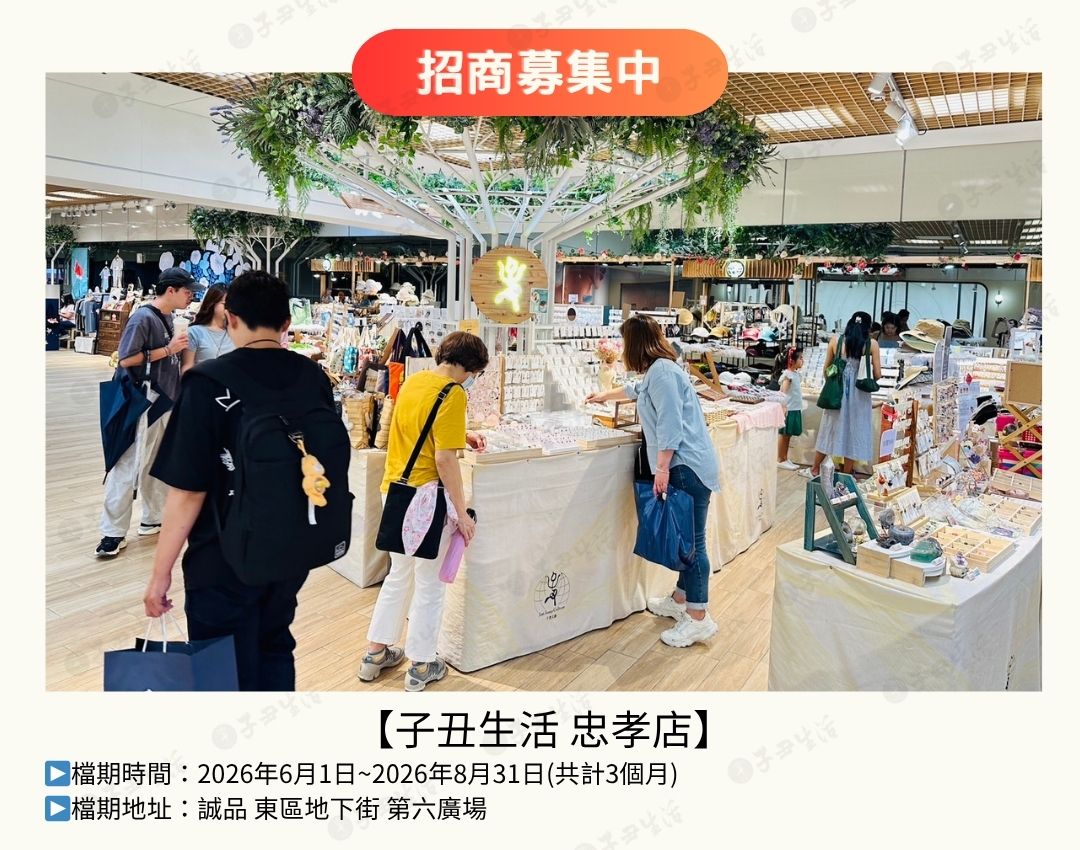 這裡的客群以『觀光客跟年輕人』為主,若您的商品適合這類客群,歡迎您與子丑合作,由於專櫃位置較少,名額有限,有興趣的品牌請把握機會唷~